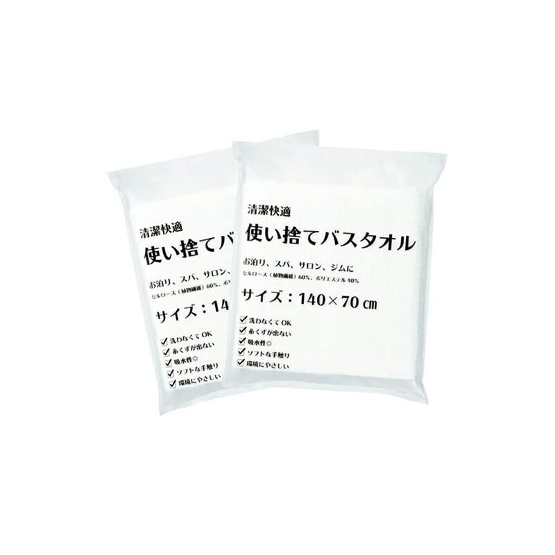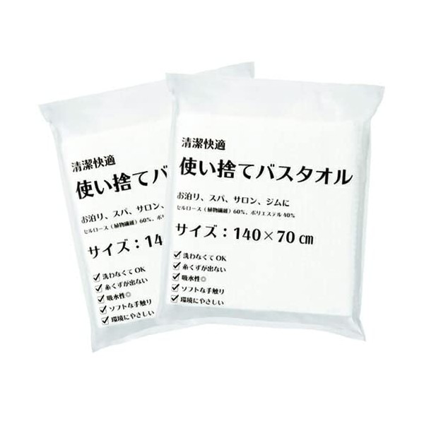 Sanwa Hotel Amenities, Clean and Comfortable Disposable Bath Towel, 55.1 x 27.6 inches (140 x 70 cm), Individual Packaging x 2, Set of 2