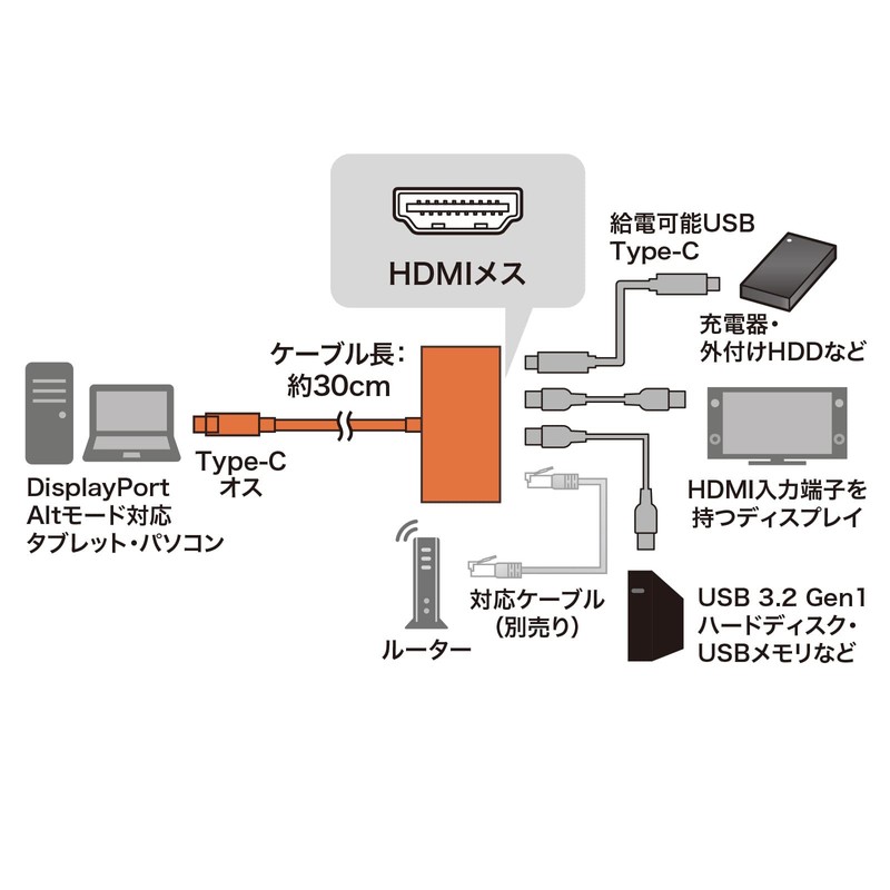 - This is a multi-converter adapter that allows you to connect HDMI, LAN, etc. with a single Type-C device
