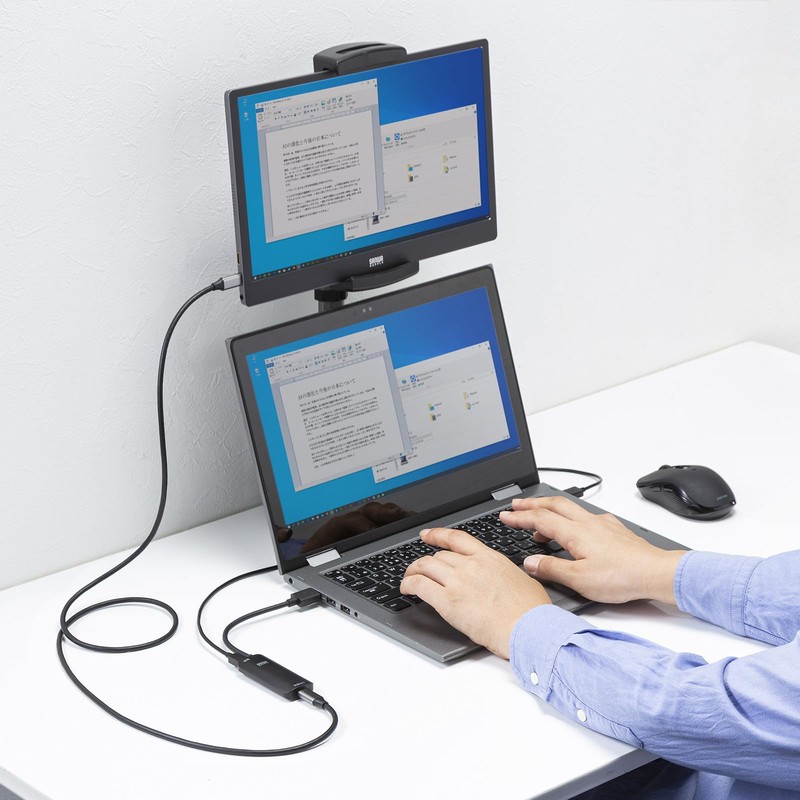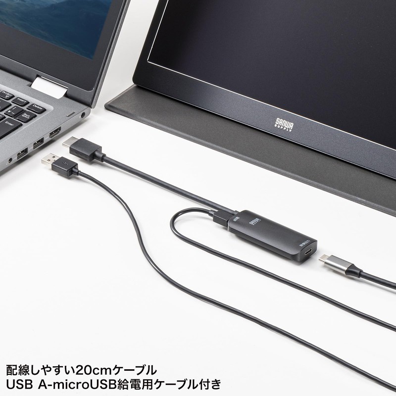 - Equipped with a power supply port (micro USB) up to 5V 2A. You can add power to the Type-C output, and you can also supply power to a connected mobile monitor. (Theoretical value up to 1.9 A) *We do not guarantee that it will work with all devices