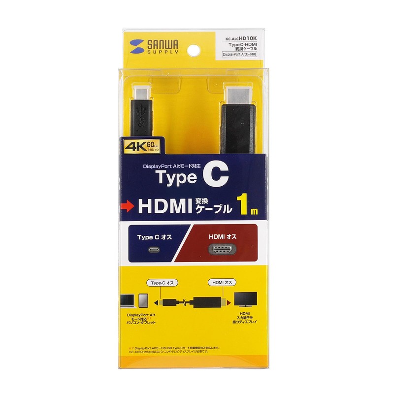 Sanwa Supply KC-ALCHD10K Type-C-HDMI Converter Cable (Black, 3.3 ft (1 m)