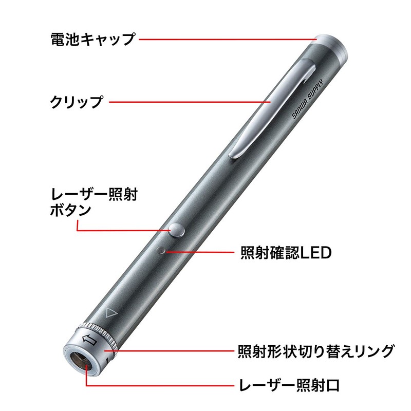 - The laser shape can be switched between 4 types, such as point shape, round, linear shape, and arrow, so you can create an effective presentation that matches the content of the slide and the size of the venue. The laser shape can be easily switched by simply turning the ring on the top