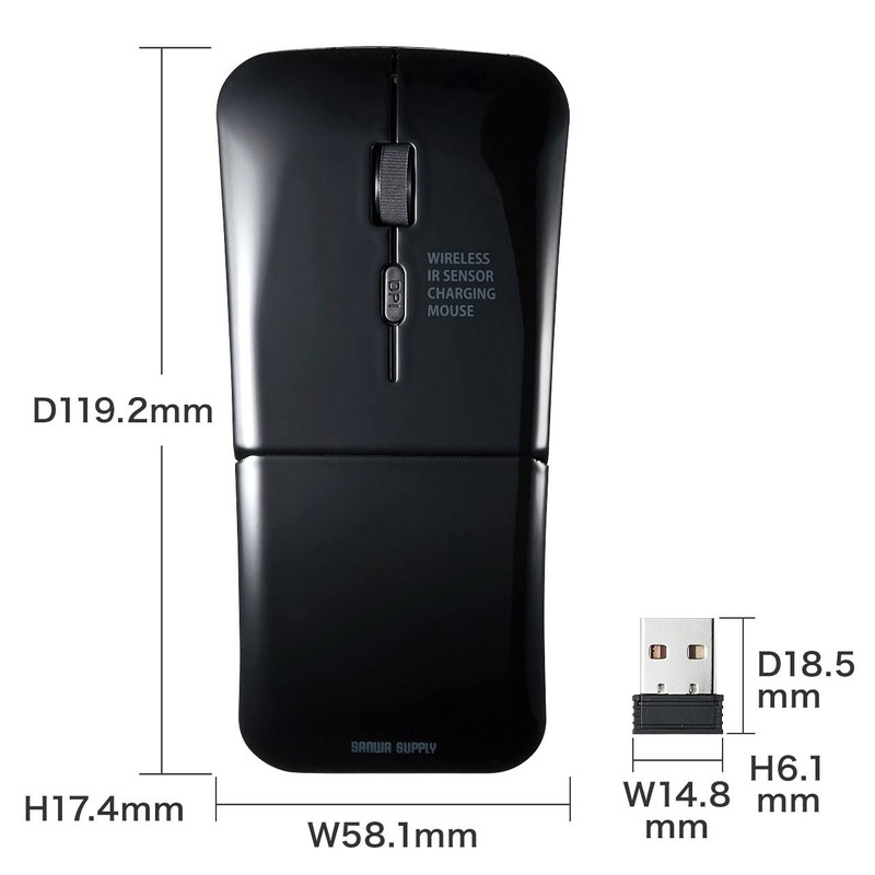 Sanwa Supply MA-WIR117BKN Silent Wireless IR LED Mouse, Black