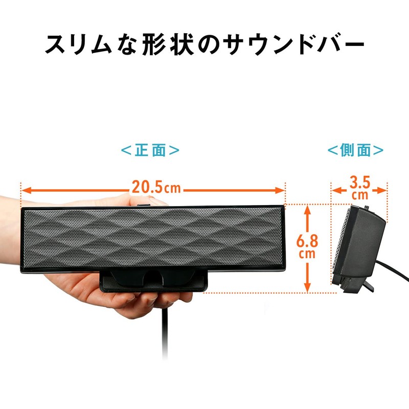 Sanwa Supply MM-SPL11UBKN USB Powered Soundbar Speaker, Black