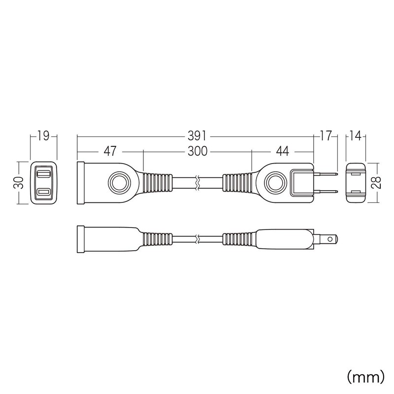 - Convenient for taps and power extension for equipment.Extension cord with swing plug with tracking fire prevention insulated cap.