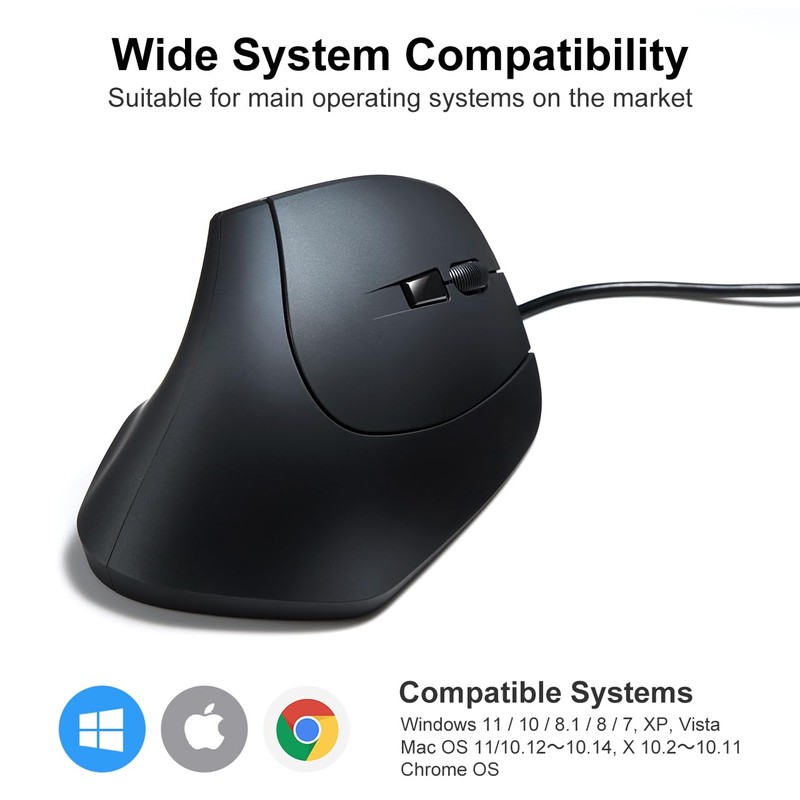 SANWA Wired Ergonomic Mouse, Optical Vertical Computer Mice, Reduce Wrist Strain, (1000/1600 Adjustable DPI, 6 Buttons) Compatible with MacBook, Laptop, Desktop, Windows, Mac OS for Office & Gaming