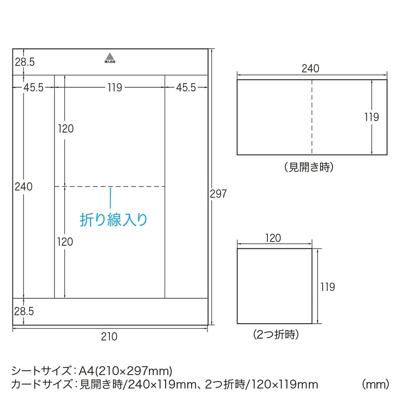 • Card Size: When opened, 9.4 x 4.7 inches (240 x 119 mm), when folded, 4.7 x 4.7 inches (120 x 119 mm), 1 sheet is included
