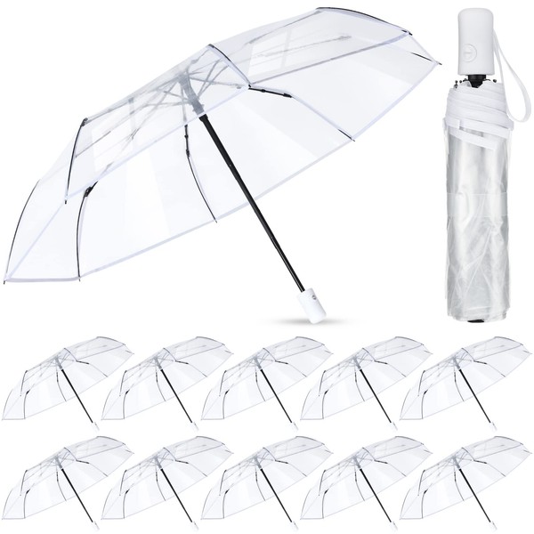 - Package Includes: you will get 12 pack clear automatic open umbrellas in white, enough for your daily use and replacement needs, the clear umbrella opens with a diameter of 38 inches / 97 cm and is large enough to accommodate 2 people; The clear umbrella can be folded to 11.2 inch / 28.5 cm, it won't take up much storage space for you
