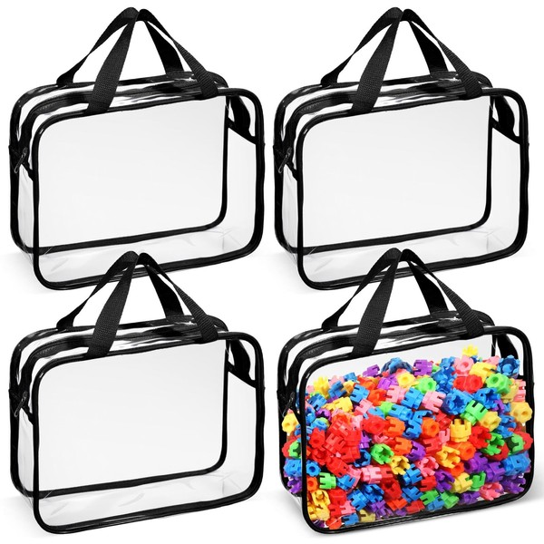 Sanwuta 4 Packs Large Toy Storage Bags Reusable Clear PVC Organizing Case Bags with Two Handles Waterproof Toy Container for Board Games, Building Blocks, Puzzles, Small Toys and Kids Books(Black)