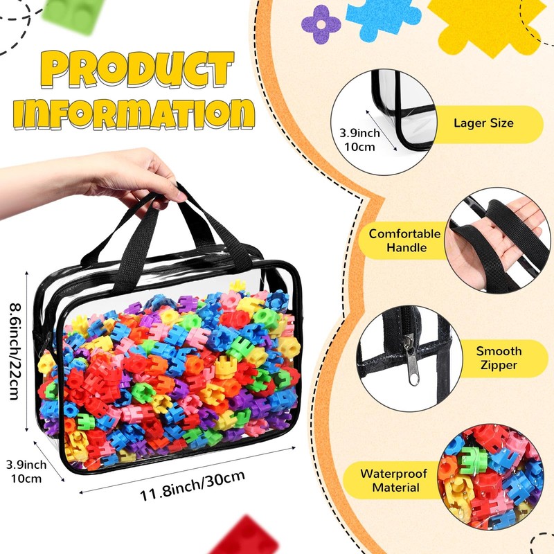 - Large Capacity Design: the kids' clear puzzle storage bags measure about 11.8 x 8.6 x 3.9 inches, and their width has been increased to 3.9 inches; This gives them an ideal capacity to store small toys, sort toys, and prevent them from having to struggle to find them in the toy box; It also makes storage and organization easier and keeps the room neat; Appropriate for kids aged over 3 years old