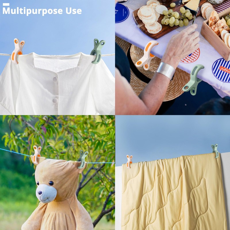 • Multipurpose Use: Beyond the beach and pool, these beach chair clips for towels can also be used for hanging clothes, swimsuit, blanket, securing picnic blankets, or holding down tablecloths during outdoor activities and fixed other needed items, adding to their versatility and practicality.