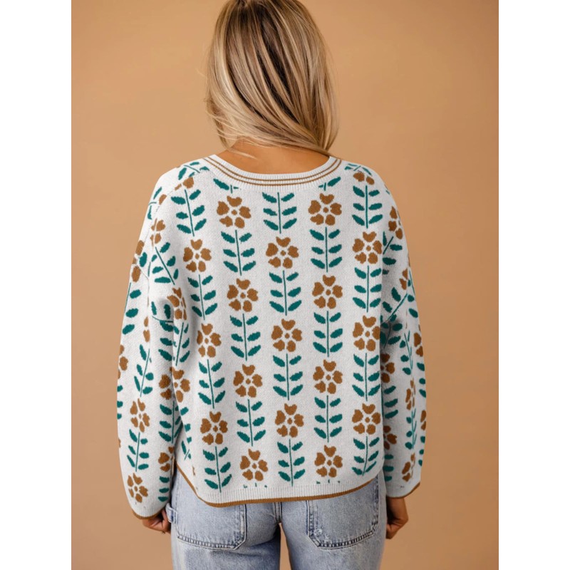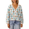 Saodimallsu Womens Floral Print V Neck Cardigan Open Front Button Down Knit Sweater Long Sleeve Loose Fashion Tops White