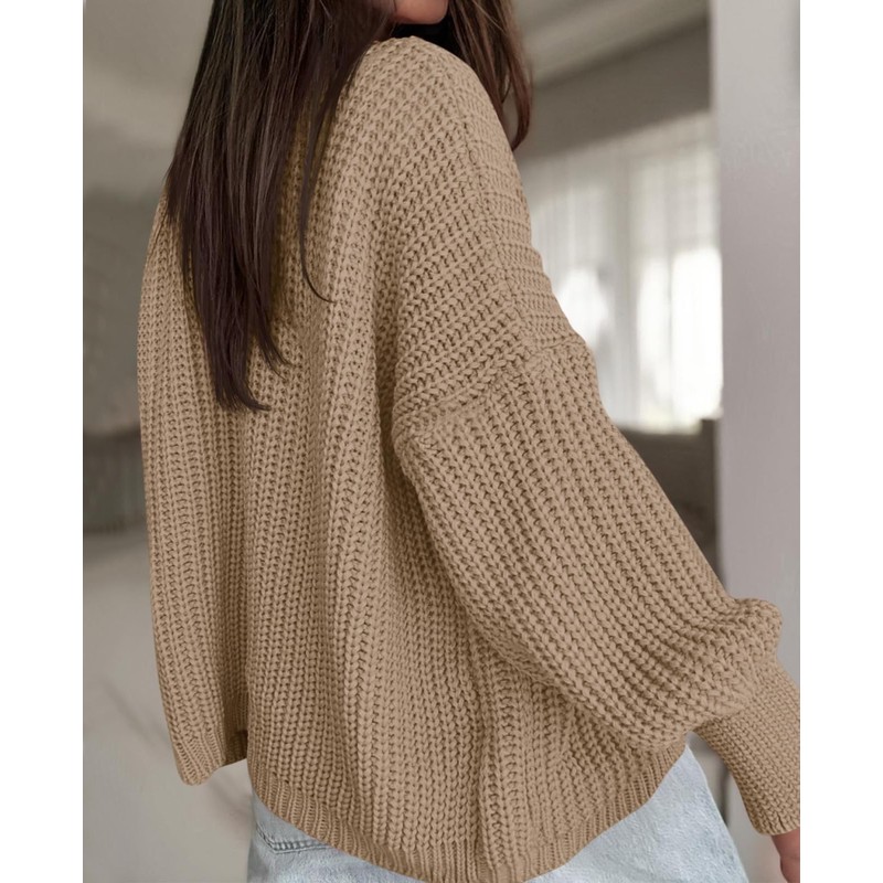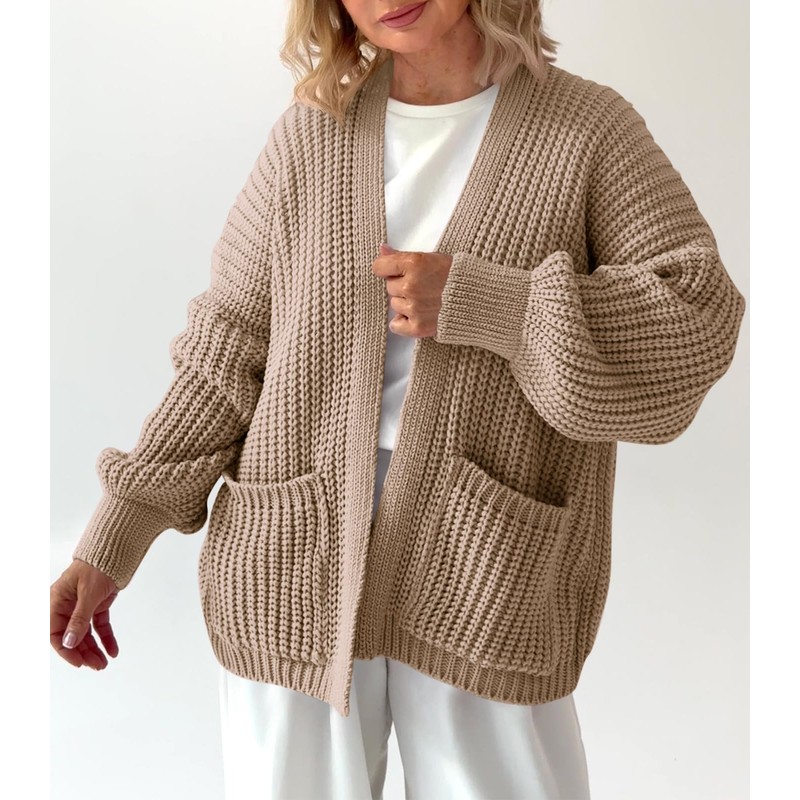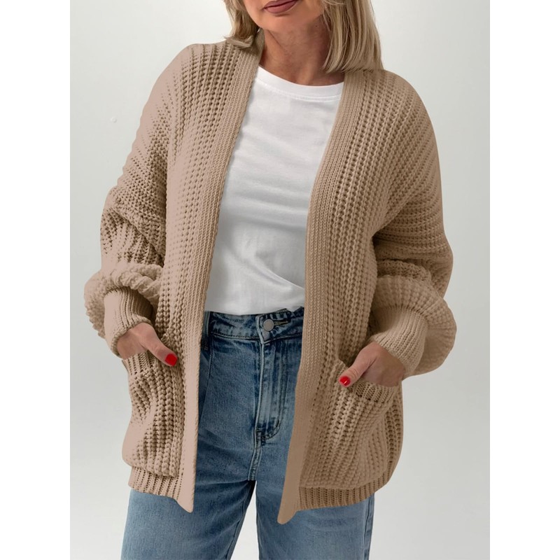 Saodimallsu Womens Oversized Cardigan Ribbed Chunky Knit Long Lantern Sleeve Open Front Fall Sweater Coats Khaki