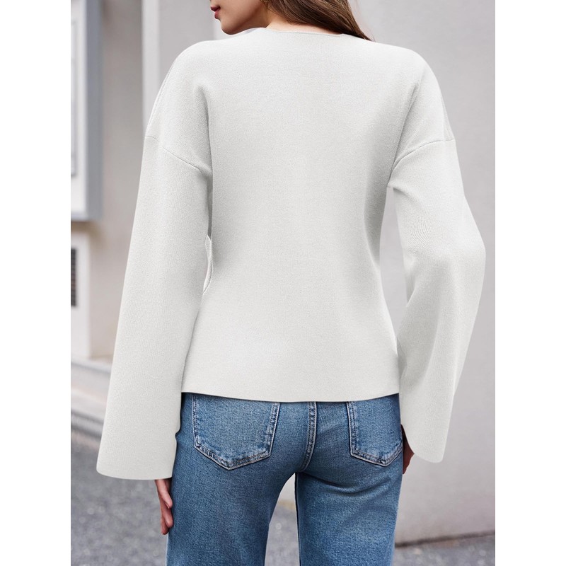 Saodimallsu Womens V Neck Cardigans Long Bell Sleeve Button Down Open Front Loose Knit Fall Sweater Blazer White