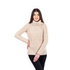 SAOL Women's 100% Merino Wool Fisherman Funnel Neck Cable Knit Long Loose Fit Sweater Knitwear (Parsnip, Small)