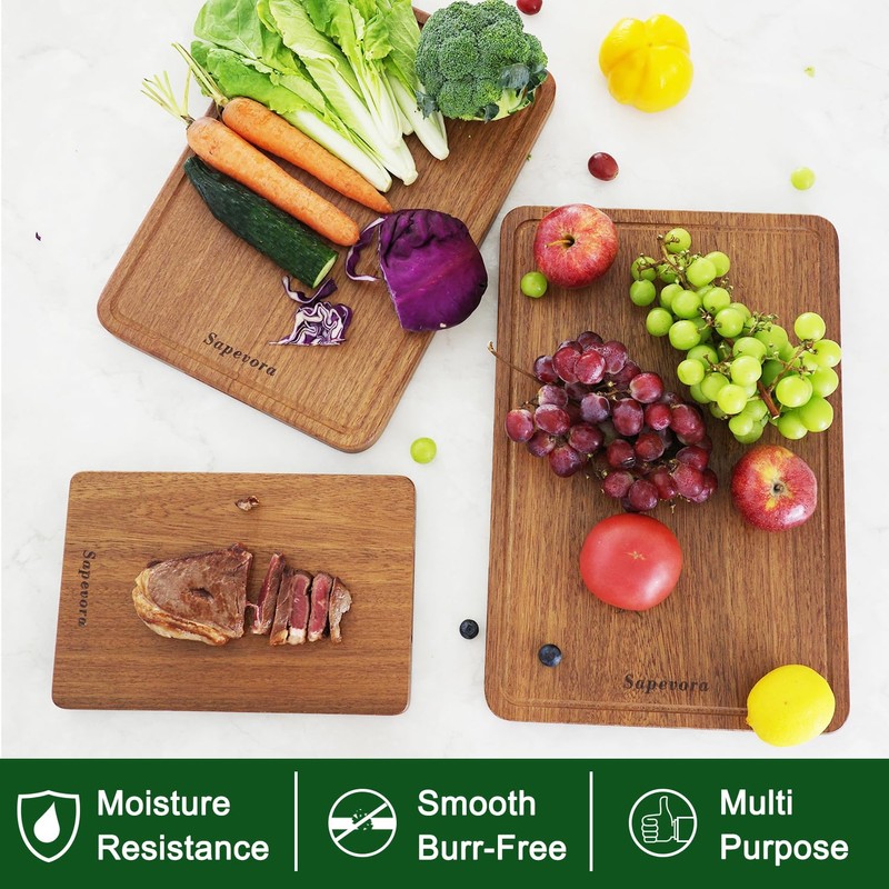 Sapevora Solid Teak Wood Cutting Board One Piece Non Glued Thick Crack Resist...