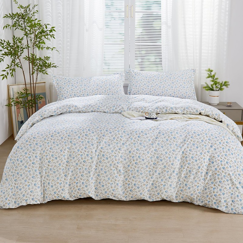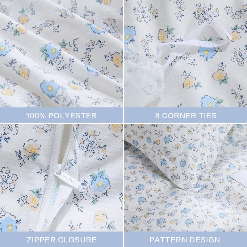 - 【Country Style Design】: This SAPHREAS microfiber duvet cover set features a charming floral pattern with soft blue and yellow flowers set against a crisp white background. The design is light, airy, and fresh, creating a peaceful, cozy atmosphere. This zipped bedding set is practical, easy to use, and adds a touch of nature to your room.