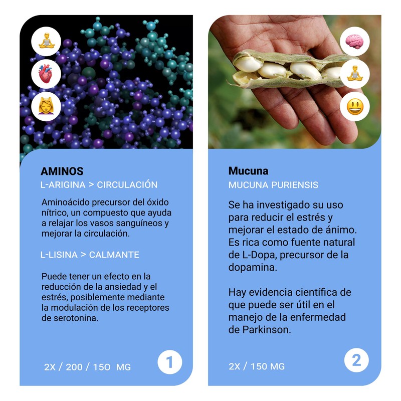 • SIN PELIGROS DE ADICCIÓN Nuestras fórmulas no generan una dependencia química ni psicológica. Para potenciar su efecto se recomienda periodos de descanso que favorecen sus efectos a largo plazo