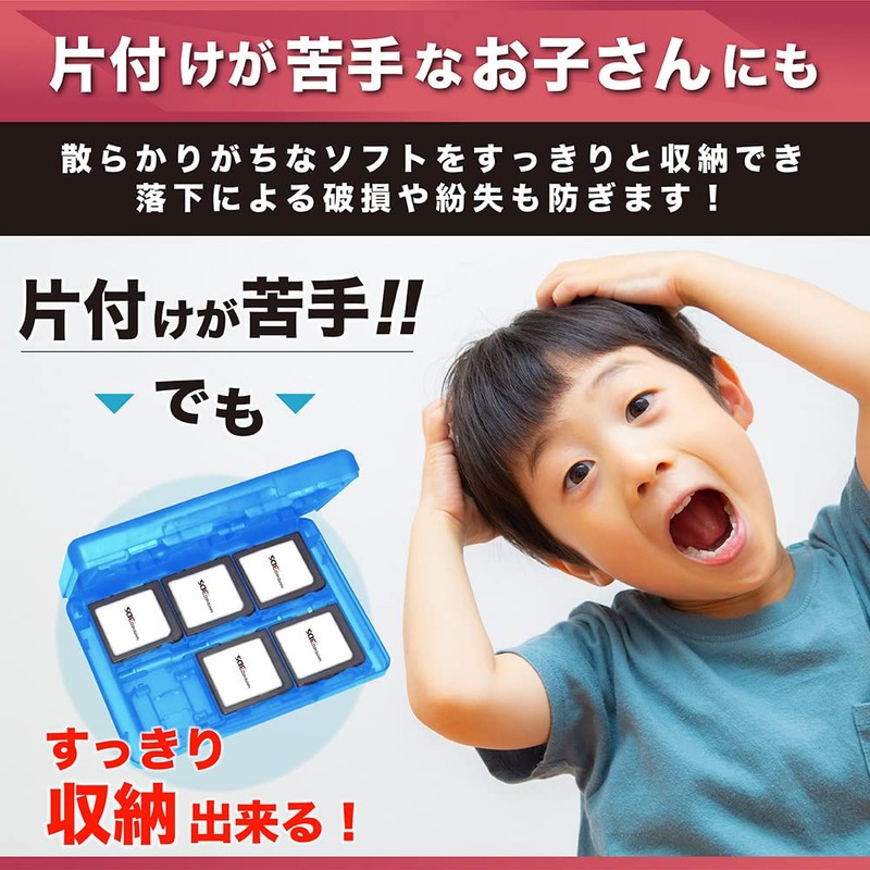 (Large Capacity 24 Sheets) Soft case that can store 24 SD cards and plenty of room for 3DS Software and SD cards. Protects the soft from scratches, dust and drops. (Transparent type for improved visibility) The unit is clear so you can quickly check the game software. (Great for Various Occasions) You can carry multiple cartridges at once, so you can use them for everyday use, but also great for travel and more. It has 1 storage compartment, so it is safe for children who don't like to clean up. Specifications: Size: Approx. 5.0 x 3.5 x 0.9 inches (12.8 x 9 x 2.3 cm); Color: Black, White, Blue, Pink.