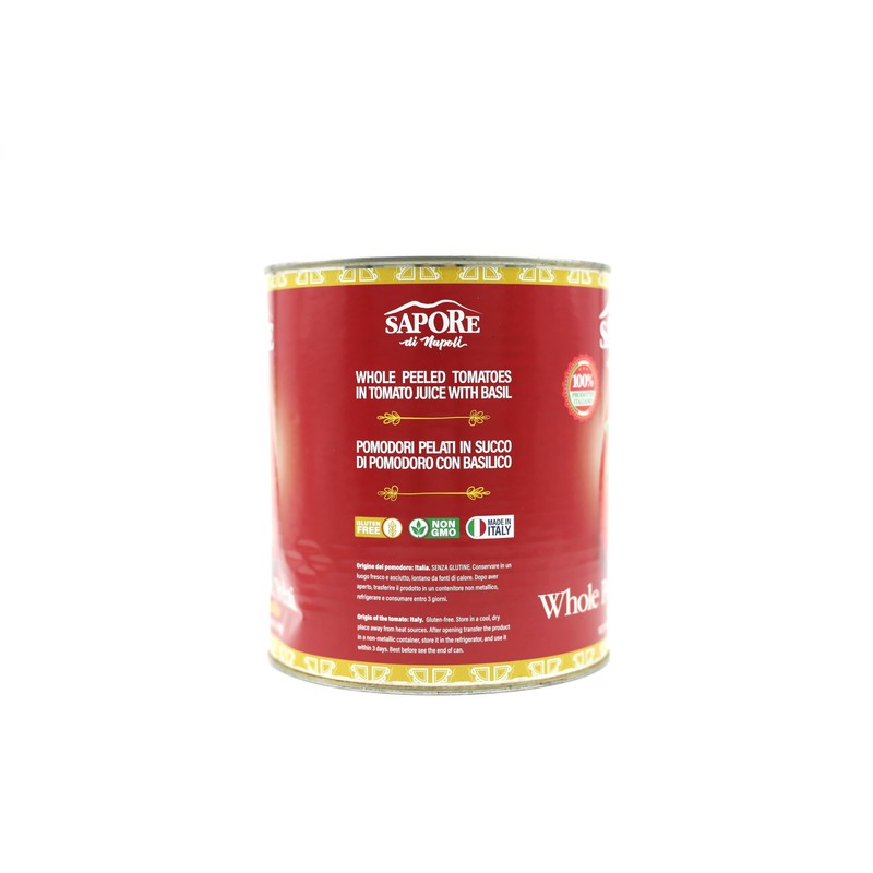 Sapore Di Napoli Italian Organic Whole Peeled Tomatoes in puree with Basil leaf 106 oz
