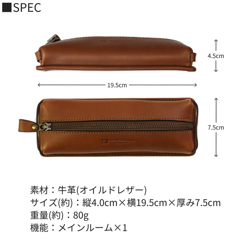 - Material: Cowhide leather (oiled leather); Size (approx): Height 1.6 x Width 7.7 x Thickness 3.0 inches (4.0 x 19.5 x 7.5 cm); Weight (approximate): 2.8 oz (80 g); Features: Main compartment x 1