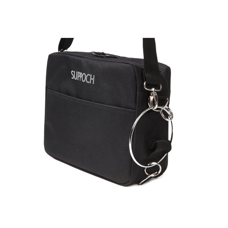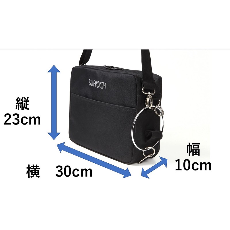 Sapurch Ring Bag, Black Shoulder Bag, Easy to Use for People with Handicapped Hands, Can Be Used with One Hand, Can Be Used Horizontally, Lightweight Bag, Polyester, Crossbody Bag, Black, A4 Size,