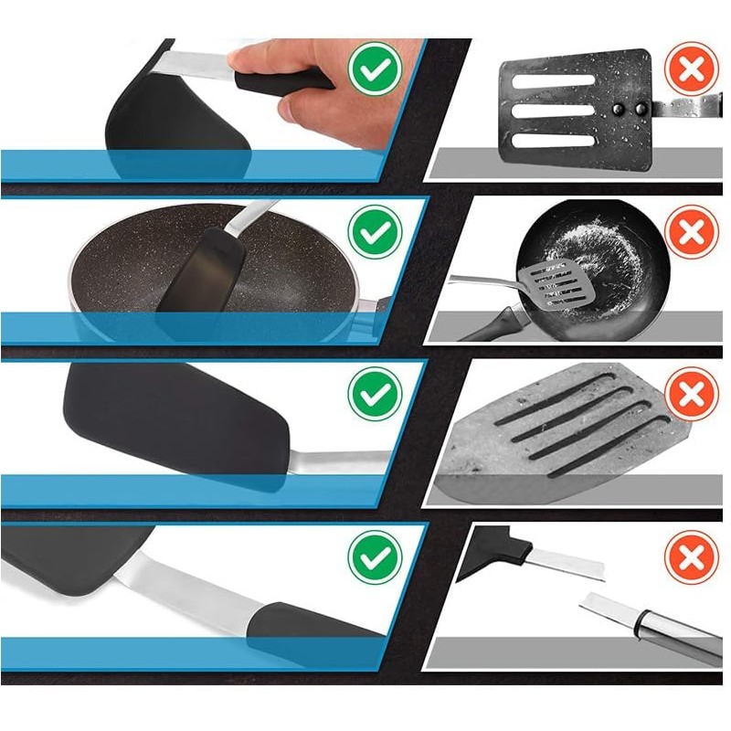 - 🍳 [ Nonstick Cookware Compatibility: ] Designed to be gentle on your nonstick cookware, this spatula won't scratch or damage the surface, ensuring your expensive pans remain in top condition.