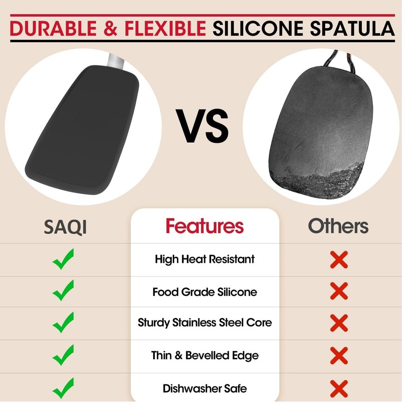 - 🍳 Whether you're a professional chef or a home cook, the SAQI Heat Resistant Silicone Spatula is an indispensable kitchen tool. With its heat resistance, versatility, and ease of cleaning, it simplifies your cooking experience, ensuring you can confidently create delicious meals. Upgrade your kitchen today with this durable, BPA-free spatula and experience the joy of effortless cooking!