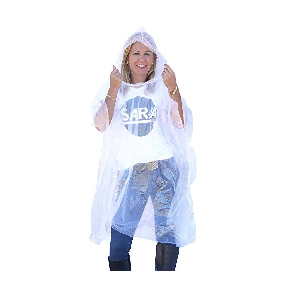 - Each disposable rain poncho is individually packaged for easily handing out to large groups of people.