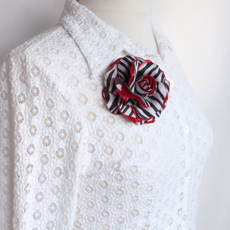 Sara Monica Hair Clip and Brooch Pin: Zebra Rose_Made in the USA