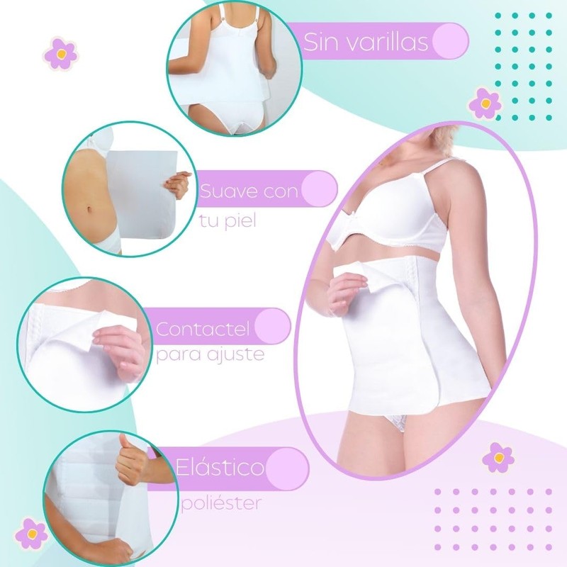 Sara&Montiel maternity - Faja post parto y cirugía SIN varillas [Larga] 100-I (G, Blanco)