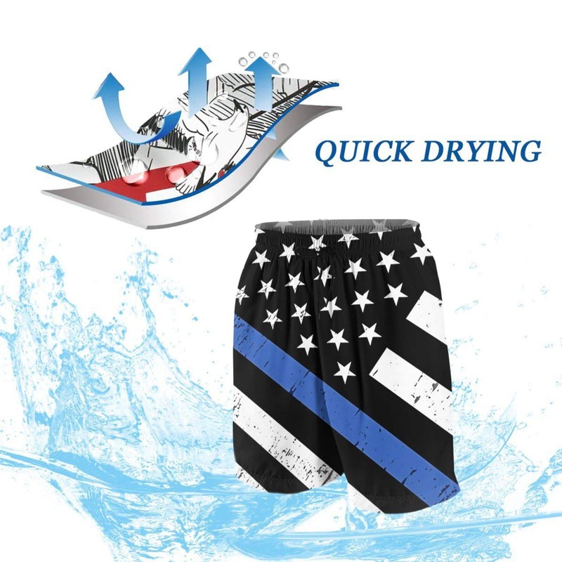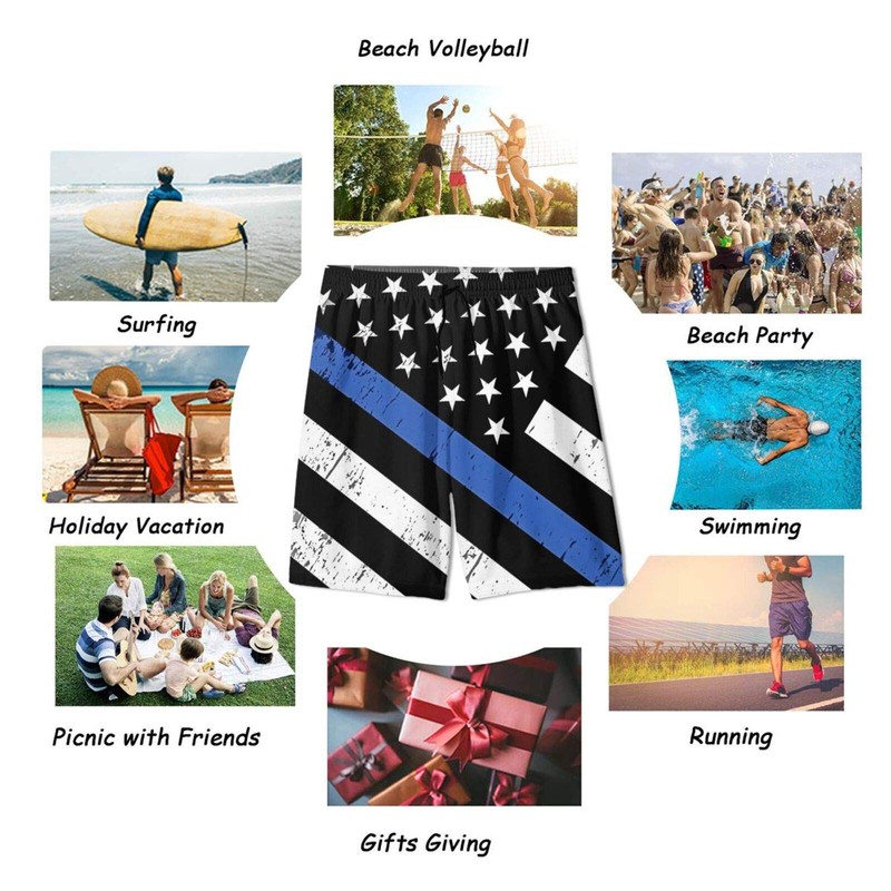 - SARA NELL Mens Fashion 3d Printing Cut Medium Length Police Support Flag Thin Blue Line Beach Shorts Beach Board Shorts Unique Funny Personalized Festival Gift Shorts Beachwear Bathing Suits,Funny And Attracting.Without Ever Fading, Cracking, Peeling Or Flaking.