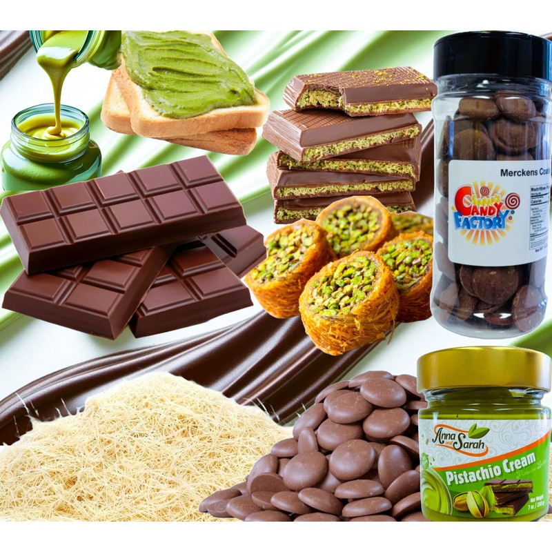 Sarah's Candy Factory Premium 500gr Dried & Shredded Kadayif+200gr Pistachios Cream +280gr Melting Chocolate, 3 Items for Dubai Chocolate, (Kataifi) Fillo Dough, Kurutulmus Kadayif Pastry Dough, Phyllo Dough