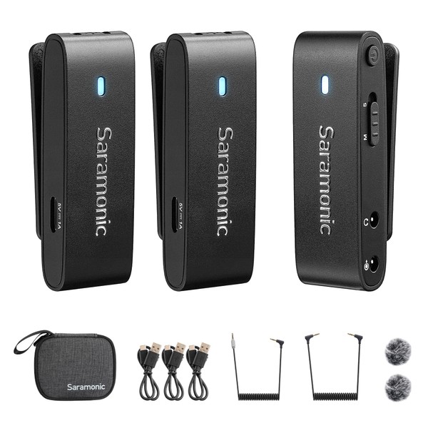 - Rechargeable Wireless Microphone System: Saramonic Blink 300 B2 comes with a 3.5mm interface receiver and 2 rechargeable transmitters. It is a professional sounding wireless lavalier microphone for Camera smartphone video recording, supporting two person interviewing.