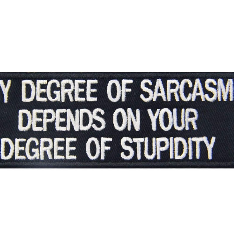 Sarcasm Depends On Your Stupidity Patch Funny Badge Embroidered Biker Applique Iron On Sew On Emblem