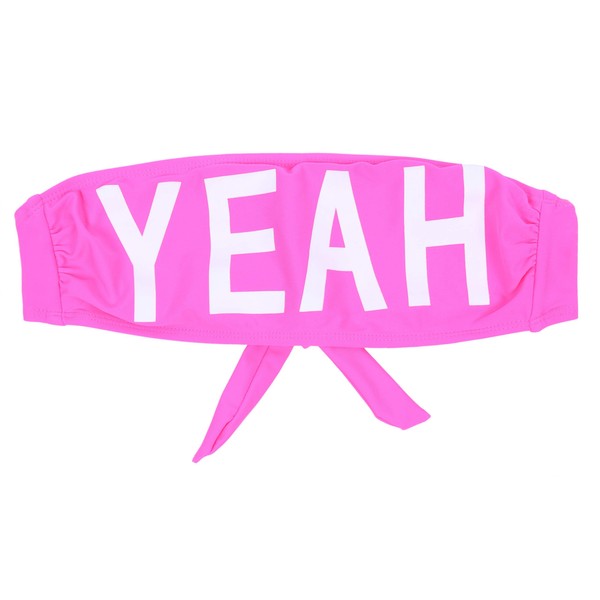 - White word "YEAH" on the front, not stiffened, tied on the back.