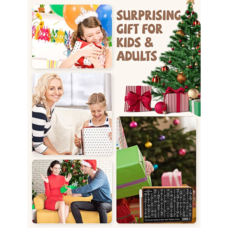 • [Universal Gift Occasion] Wooden saving box with neutral design suits all ages - teens (allowance training), couples (emergency funds), or retirees (pension tracking).  A fancy choice for friends and family members on birthdays, Christmas...