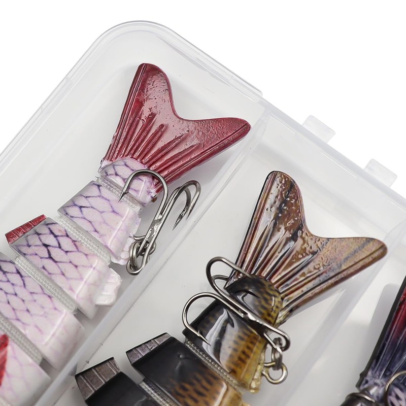 Sarini 3Pcs Multi Jointed Pike Fishing Lures Sets 3D Artificial Lures Slow Si...