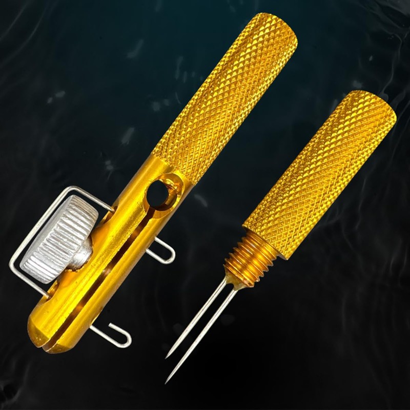 - This metal knot tying tool is a 2 in 1 detachable tool with 2 pieces, firstly the outside is for tying the hook and the inside is for knotting the line.