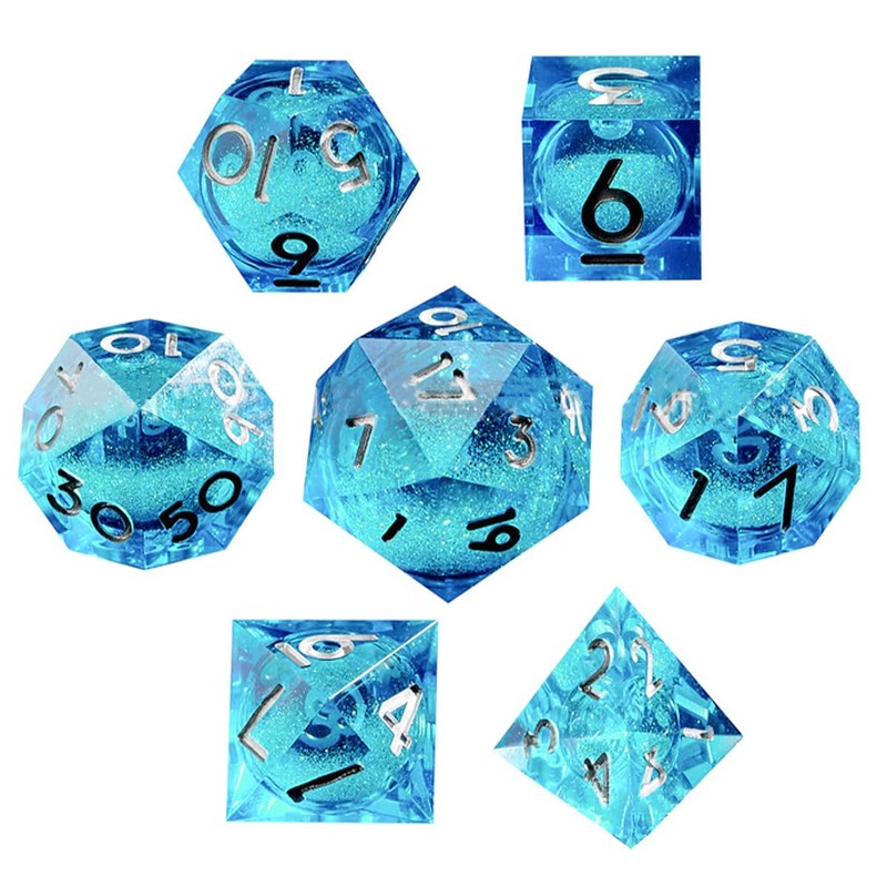 Sarini 7-teiliges Würfelset mit Flüssigkern und Kunstharz,scharfe Kanten,polyedrische DND-Würfel für Dungeons and Dragons,RPG,MTG-Tischspiele (Goldblau)