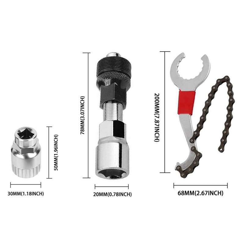 - Complete Repair Solution: This all-in-one mountain bike repair tool kit is equipped with essential tools, including a chain tailoring, chain remover, bracket remover, freewheel remover, and crank puller, perfect for any bike maintenance task.