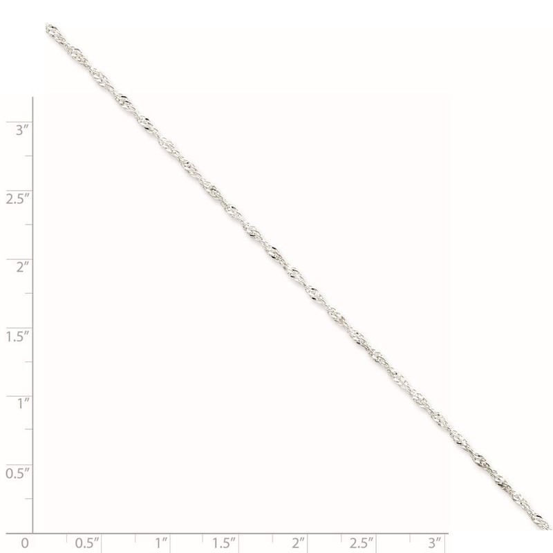 - Sterling Silver 2mm Singapore Chain Anklet with 1in Extender Length