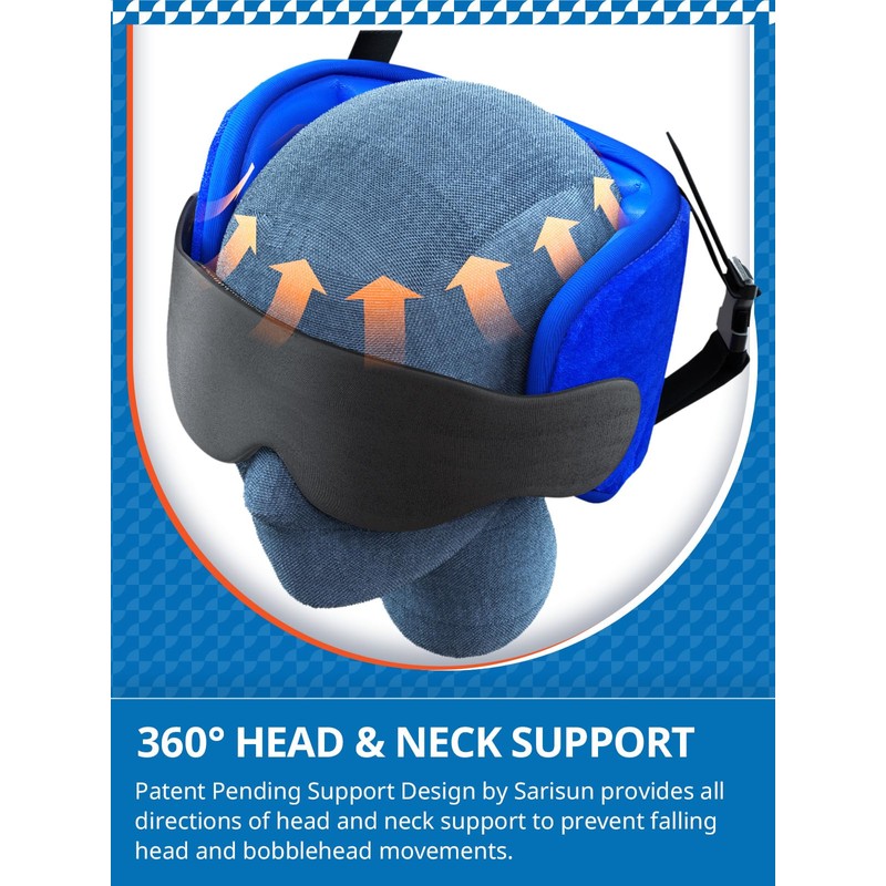 - The Latest Innovation in Travel Pillow: Patented Support Design by Sarisun (Design Patent No. 6369297) by combining the idea of both travel pillows and eye masks, we created the next generation of travel pillows. Instead of simply a pillow and sleep mask travel set, we well-designed and established the best features of these two products to form this unique neck support pillow.