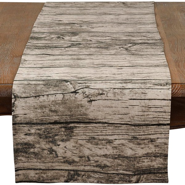 SARO LIFESTYLE 426.N1672B Lignum Vitae Collection Printed Wood Design Table Runner, 16" x 72", Natural