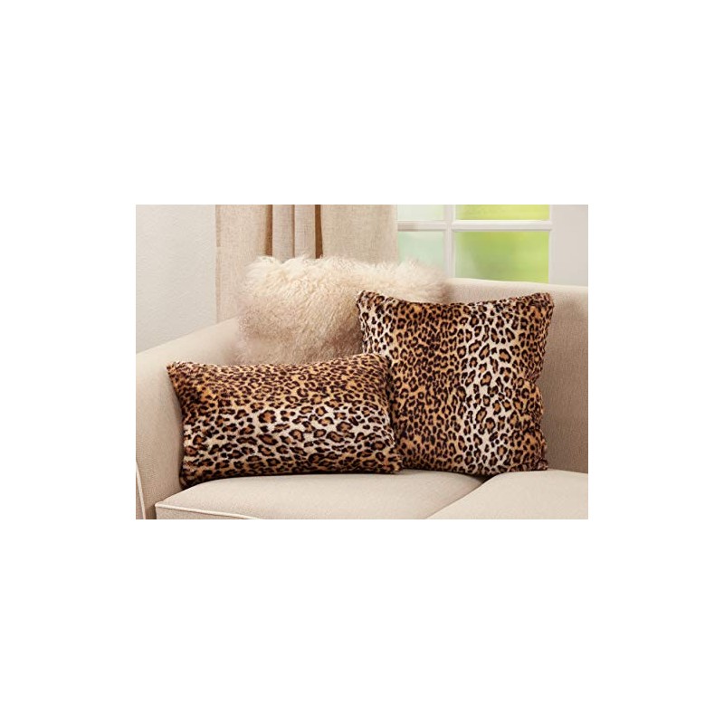 SARO LIFESTYLE Guépard Collection Cheetah Print Faux Fur Throw Pillow with Poly Filling, 18", Brown