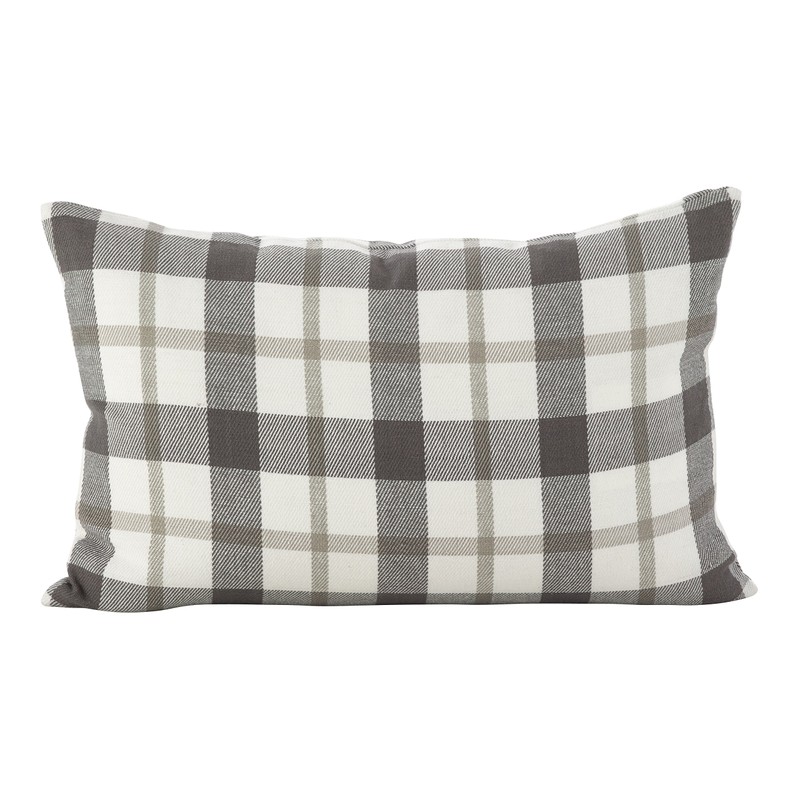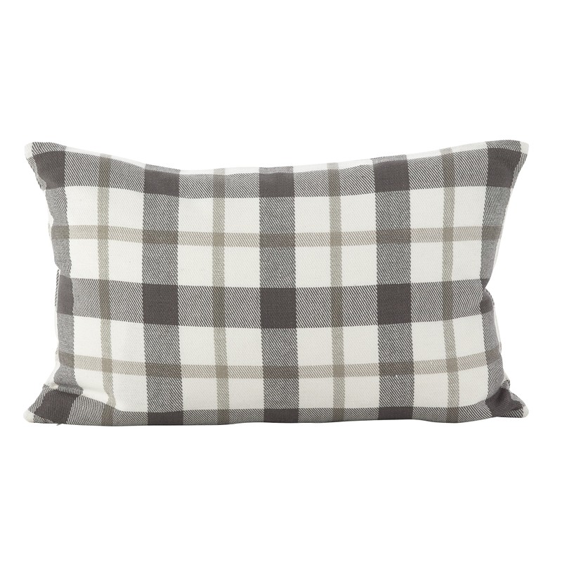 SARO LIFESTYLE Classic Plaid Pattern Cotton Down Filled Throw Pillow, 12" x 20", Grey