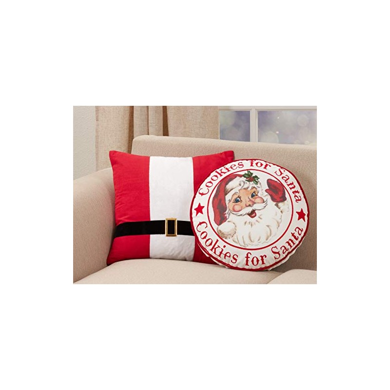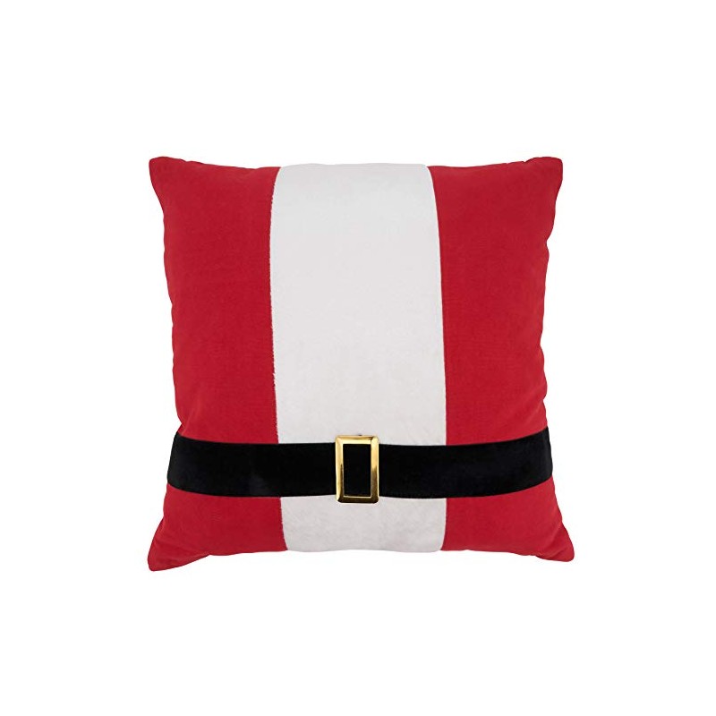 SARO LIFESTYLE Kringle Collection Santa Belt Throw Pillow with Poly Filling, 18", Red