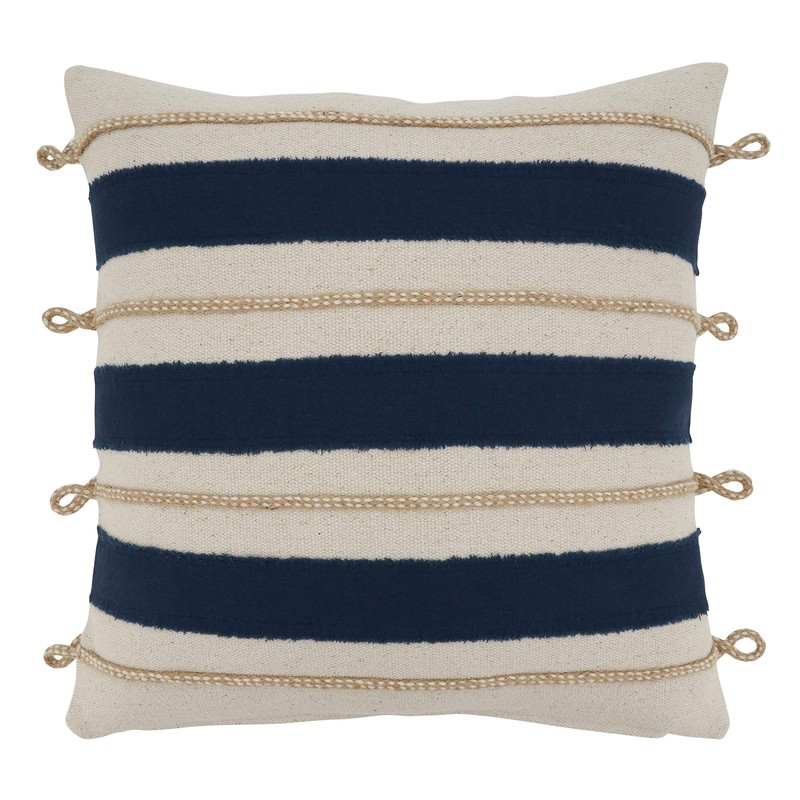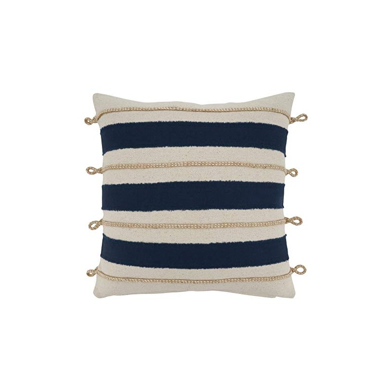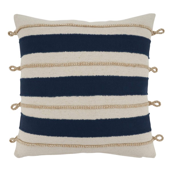 SARO LIFESTYLE Naviguer Collection Rope Appliqué Throw Pillow with Poly Filling, 18"", Navy Blue