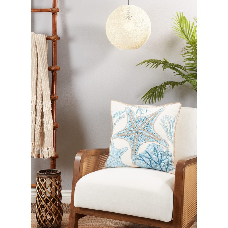 Saro Lifestyle Poly Filled Starfish Throw Pillow, Aqua, 20"