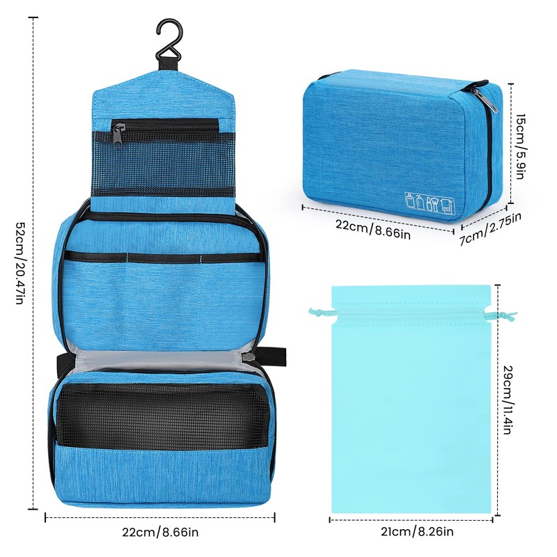 Sarsumir Toiletry Bag Women's Men's Toiletry Bag Cosmetic Bag for Hanging Travel Makeup Bag Wash Bag 1 Toiletry Bag + 2 Bags with Drawstring, sky blue