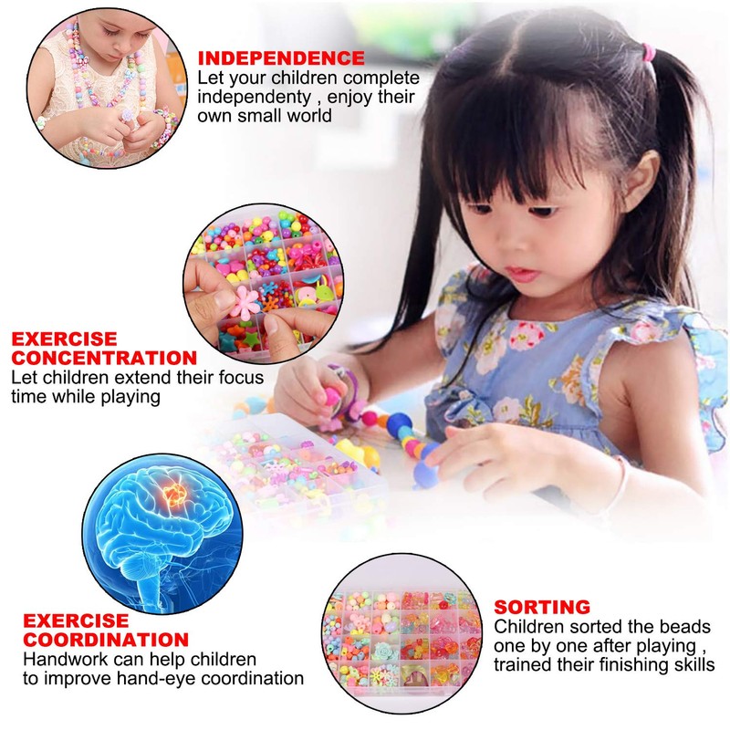 - Children’s DIY intelligence beads can help children improve hand-eye coordination ability. Ideal for nurseries to help teachers organise a variety of educational activities.